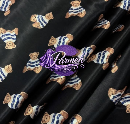 کلاه ساتن طرحدار پرمه_طرح تدی۲ زمینه مشکی کد۵۴