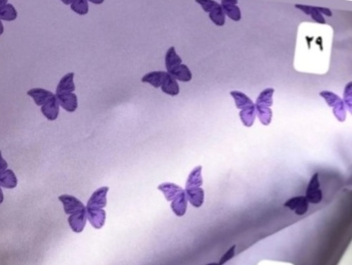 روبالشی ساتن طرحدار پرمه_طرح زمینه یاسی پروانه بنفش کد۲۹