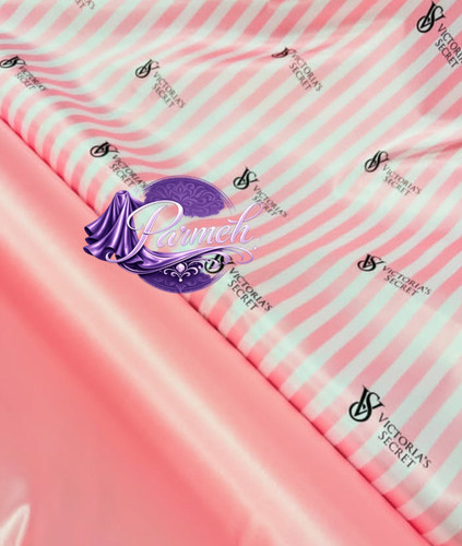 ست ۴ تیکه تاپ و شورتک ساتن پرمه-طرح ویکتوریا سکرت صورتی همراه با اسکرانچی و بگ طلقی رایگان