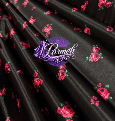 کلاه ساتن طرحدار پرمه_طرح گل سرخ زمینه مشکی کد۵۳