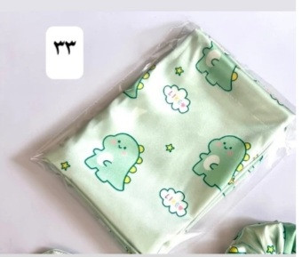 ست کلاه و روبالشی و پاپیون ساتن پرمه-طرح دایناسور زمینه سبز کد۳۳همراه با اسکرانچی و بگ طلقی رایگان