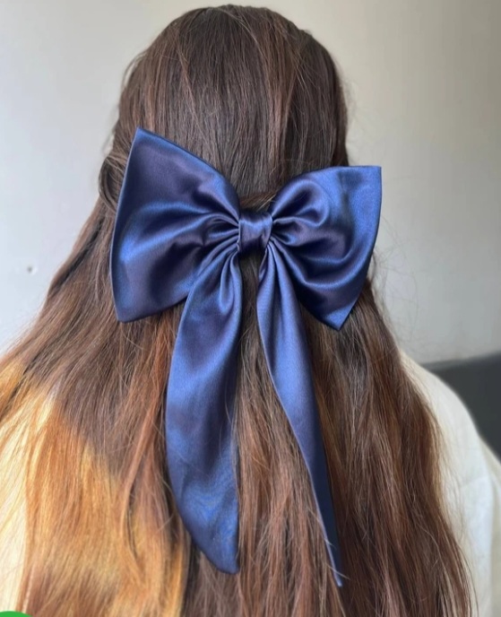 ست کلاه و روبالشی و پاپیون ساتن پرمه-طرح Dior سرمه ای کد5۲همراه با اسکرانچی و بگ طلقی رایگان