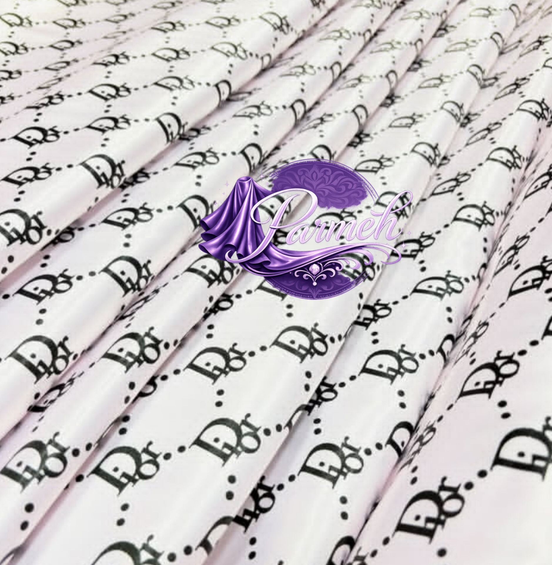 روبالشی ساتن طرحدار پرمه_طرح Dior سفید کد۵۱