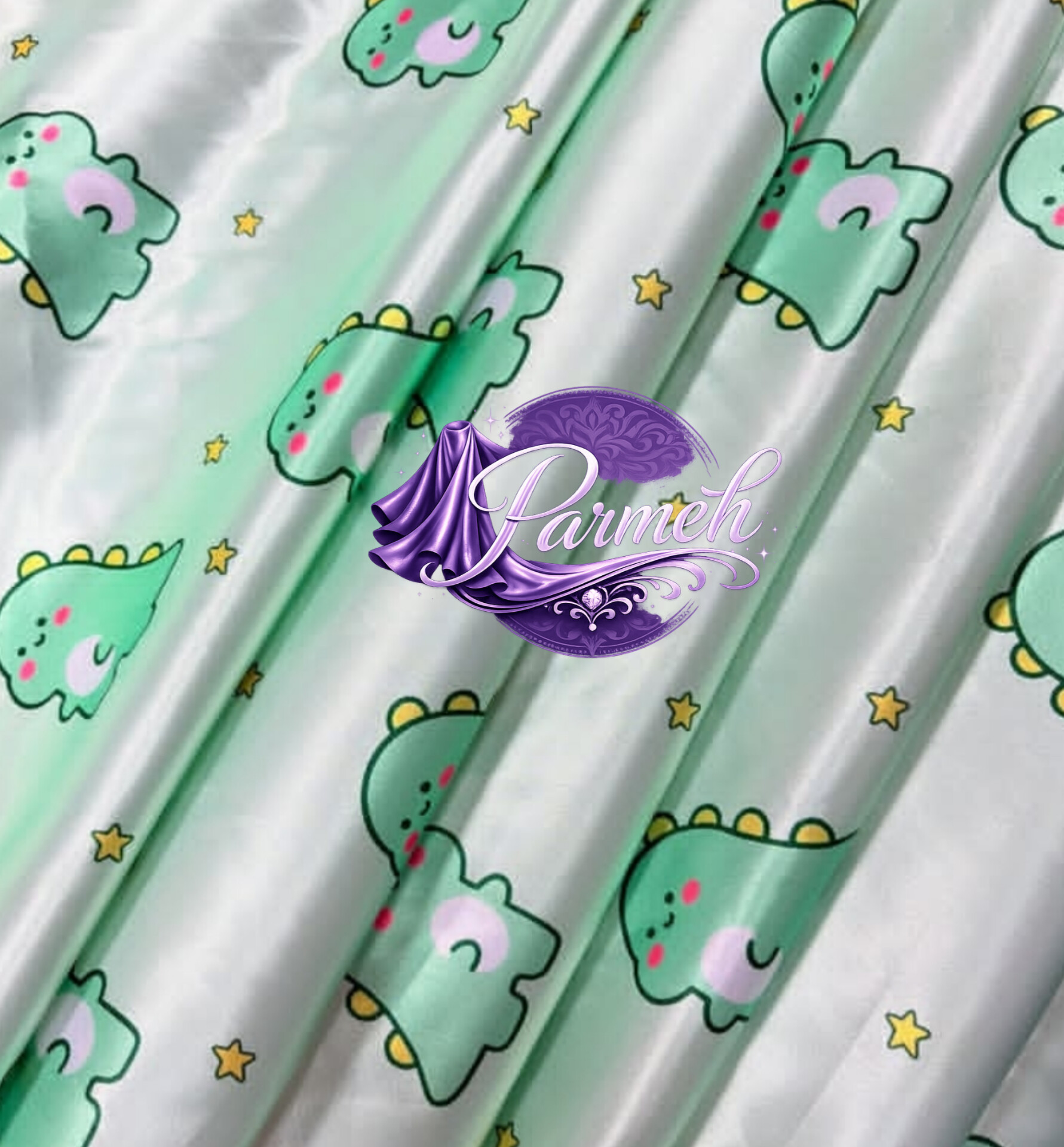 روبالشی ساتن طرحدار پرمه_طرح دایناسور زمینه سبز کد۳۳