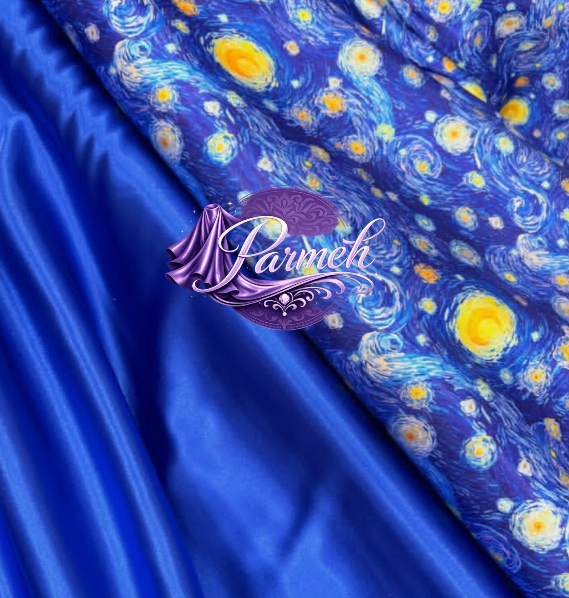 کلاه ساتن طرحدار پرمه_طرح کهکشان مشکی کد۲۲